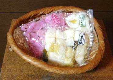 しば漬けのほかにもさくら漬け、ゆず大根、昆布大根など種類も豊富でどれをとってもしば漬け同様パリパリ感と絶妙な味つけはニシダやさんオリジナル。 |